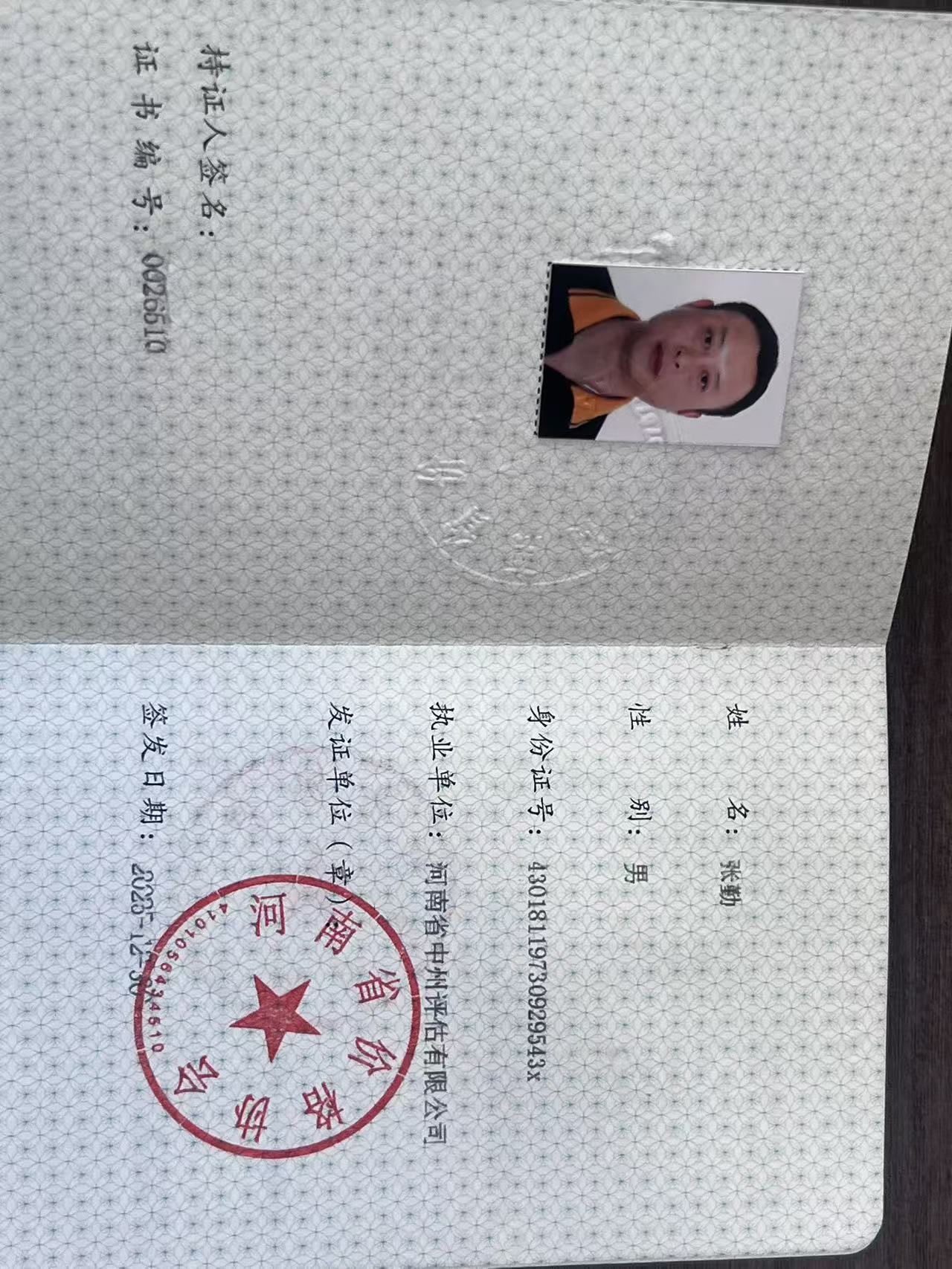 | 0026510 | 张勤 | 综合类、涉诉讼类 | 河南省价格协会 | 2025-12-30 | 2028-12-29 | 查看证书 |